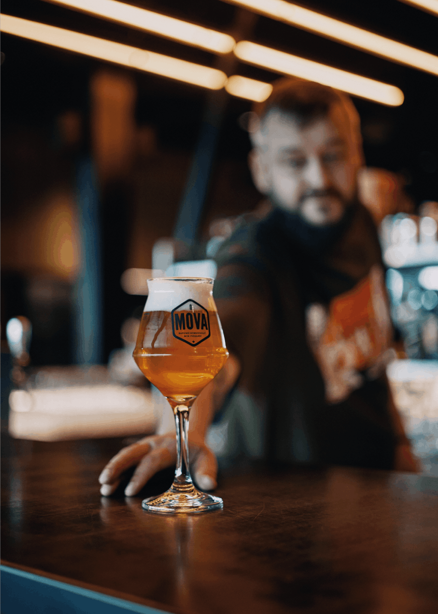 Ми створили MOVA простір на базі власної пивоварні, яку побудовано як взірець культури споживання пива, для знайомства з новими смаками, зустрічей з друзями, або приємного вечора з келихом улюбленого пива